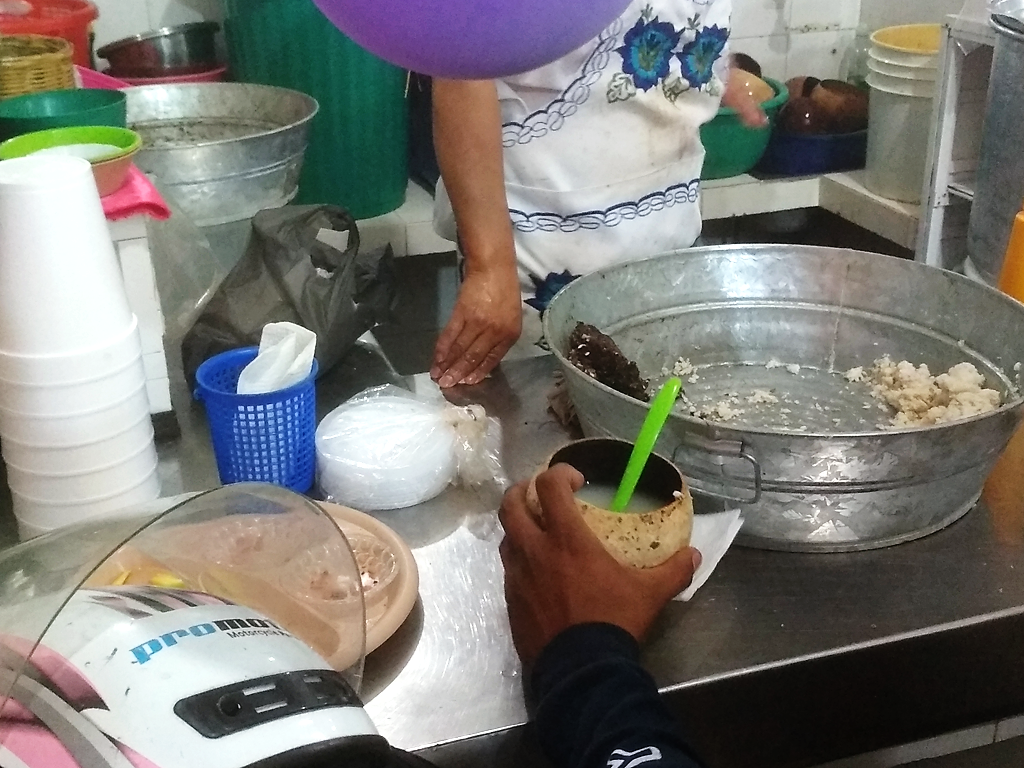 De 12:00 pm a 01:00 pm; fue la hora pico, el momento en que el pozol se entregó de manera gratuita, y los rostros alegres comenzaron a aumentar, duró una hora la efervescencia de la festividad; las jícaras pasaron de un lado a otro, los brazos de las mujeres batían sin cesar, en algunos locales se acabó la masa, y la botana amenazaba con no alcanzar, al final nada terminó, ni la bebida, ni la comida, ni la celebración.